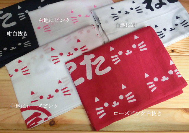 色のバリエーションは全部で5種類。かわいい手ぬぐいを手にとったあなたには「福」が訪れるかも。勿論、猫好きの方にもおススメです(*^^)v