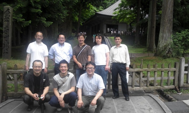世界遺産の中尊寺、斎染さんは3回目である、でも20年振りくらいだな。金色堂の中は撮影不可なので、ここで記念撮影。「ひところより観光客減ったなぁ~? 減ったんじゃない!?」 地元会員の感想。