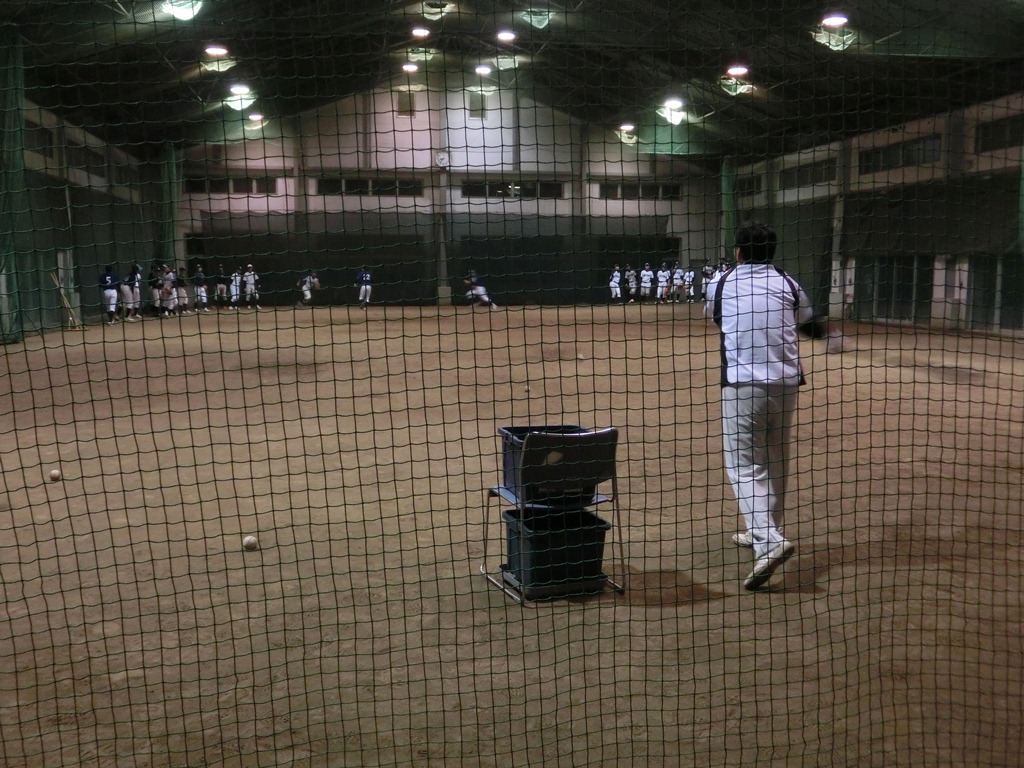 軟式とは違う乾いた「音」が練習場内に響きます。そして上を目指している人間の集まり、緊張感が違います。そんな中やってくれましたタクミくん。練習中「立ちくらみ」したそうで・・・・初日早々に(^_^;) これから自分で管理することが多くなるんだからしっかりして下さい。