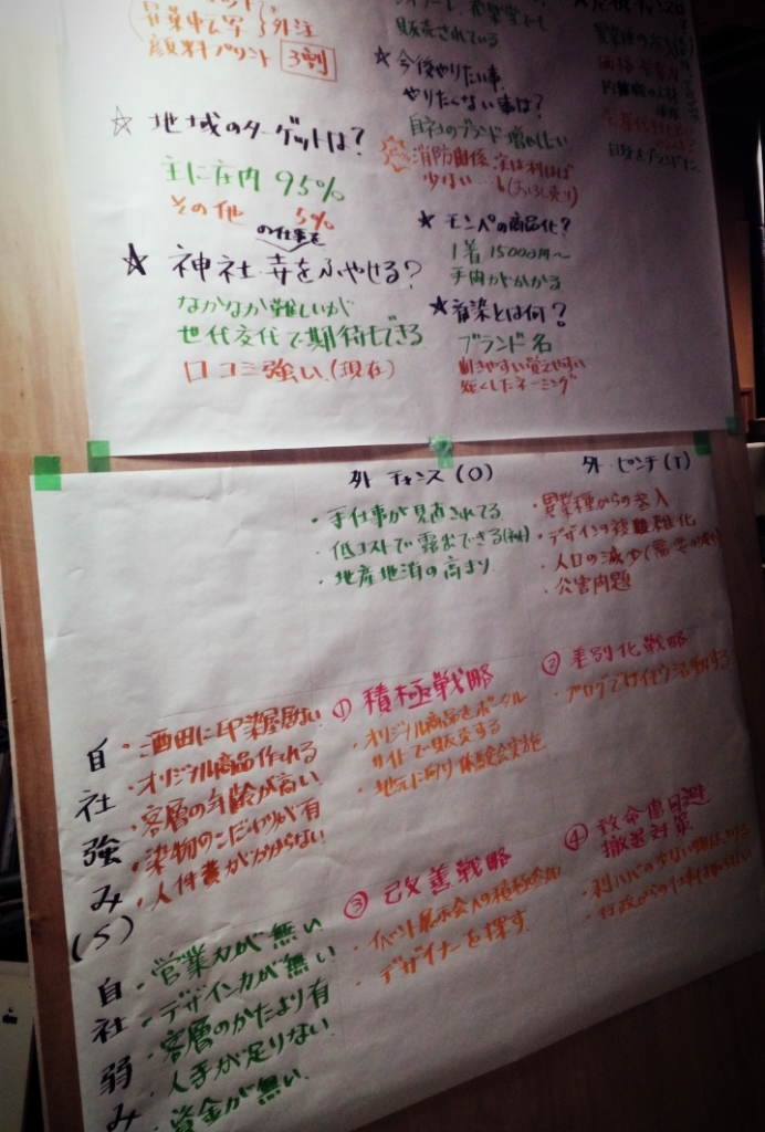 2 ワークショップの中に SWOT分析 を取り入れ、自社を分析。