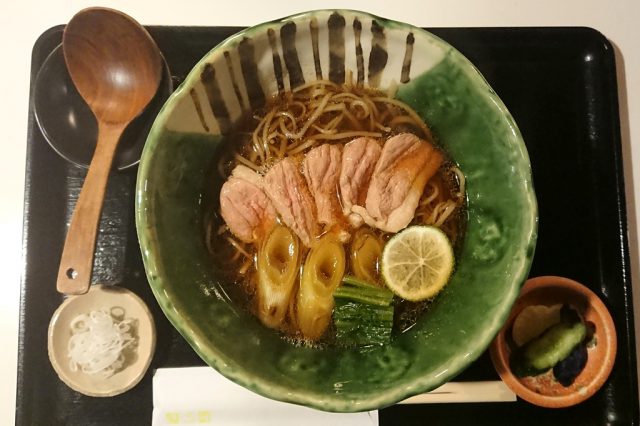 鴨肉が柔らかく、そばは細め。上品な感じ。