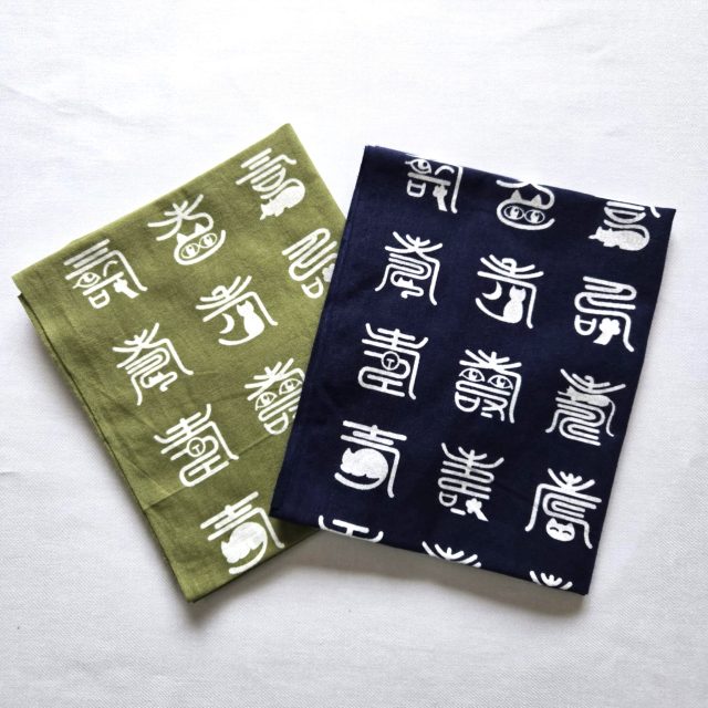 この度、猫百寿(ねこひゃくじゅ)手ぬぐいを染め上げました。
