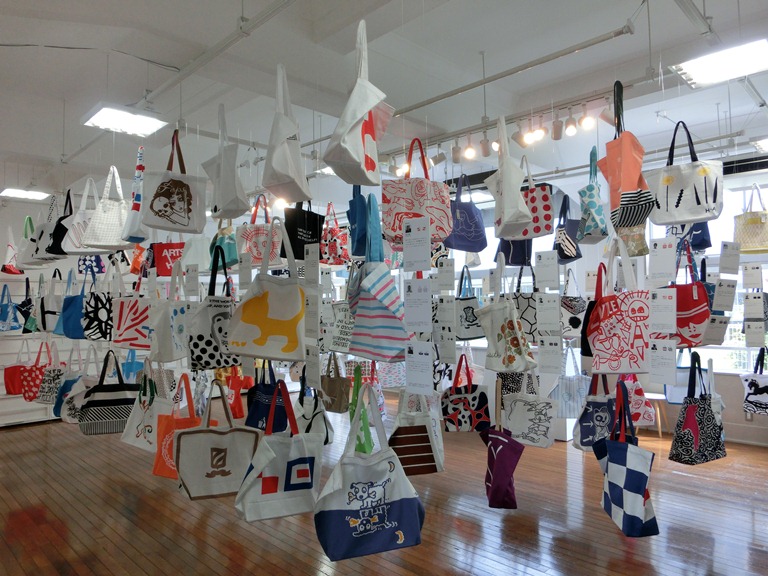 山形市に行って「印染めトートバッグ展」を見てきました。東京のギャラリーに行けなかったので、こんなにたくさん展示してあるのを見たのは初めてです。