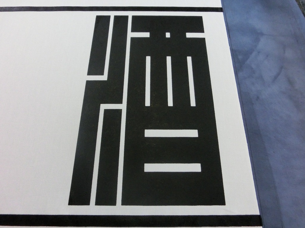こちら袢天に染められた文字。酒と読めると思いますが、どんな書体か解りますか?