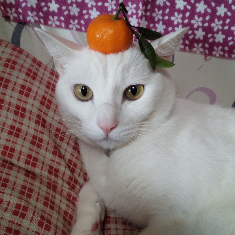 ねこ鍋ならぬ「ねこ鏡もち」 ウチのねこ神様は正月早々、活躍しております(^^♪