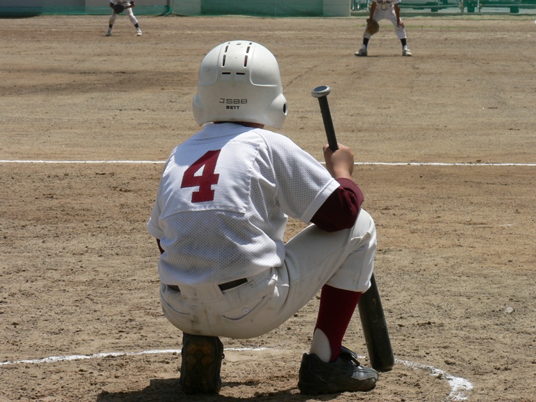 1塁コーチャーなのに「ぼー」っと突っ立ているゆーじくん。彼がグランドで活躍する日は・・・・・