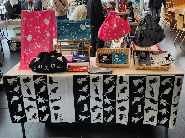 100年という節目を、お客様と共有できたこと。そして、昔ながらの染めの技術を今の暮らしに取り入れた商品が、昭和レトロな街並みに溶け込み、興味を持っていただけたこと。それらすべてが、とてもありがたく、心に残る出店となりました。ちなみにご購入頂いたものは9割方猫柄のアイテムでした。