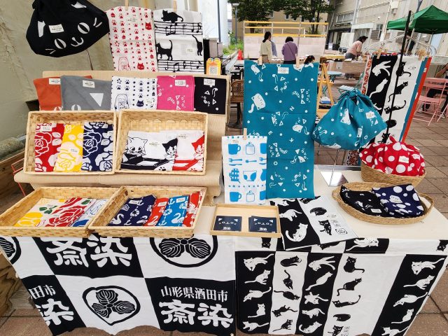 そんなレトロな空気が流れる商店街の中で、斎染の「手ぬぐい」や「風呂敷」「あずま袋」など、レトロかわいいファブリックが鶴岡の皆さまに受け入れていただけたことは、本当に嬉しい出来事でした。