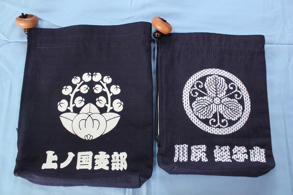 ちなみに左側の巾着袋、片面には文字を染め抜いてます。お客様が書いた文字を型どりました(*^^)v
