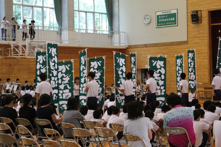 今日は中学校新人戦の壮行式でした。タクミが出場するということでミチコさん仕事さぼって(笑)見に行きました。