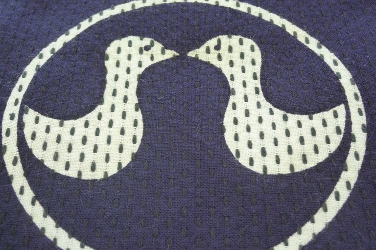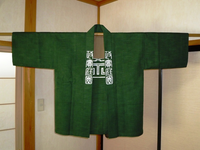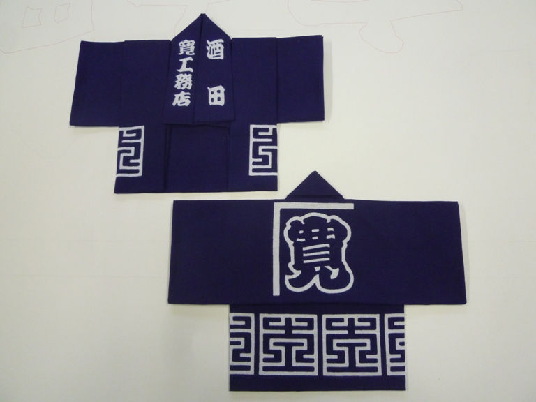 大紋(だいもん) 背中にあしらった文字は角字です。漢字を同じ巾の線で正方形に紋様化したものです。
