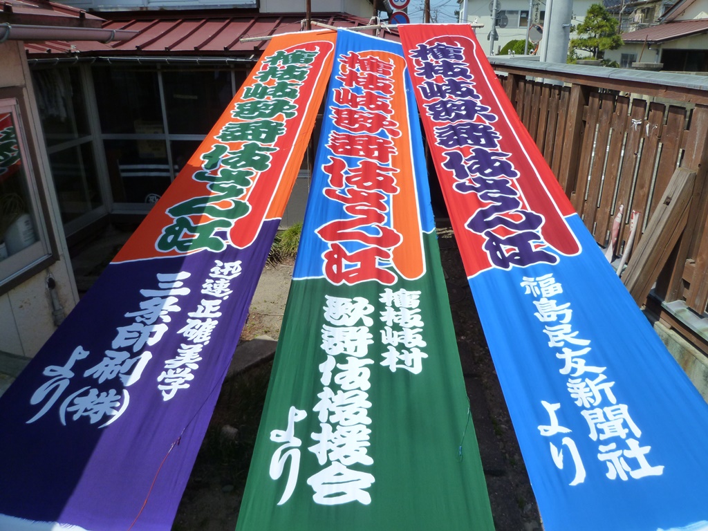 これが斎染で染めた「幟 のぼり」です。会場では横向きになってましたが、9月、山形ビエンナーレ2016本番の時は、文翔館に立てるそうです。楽しみです(^^♪