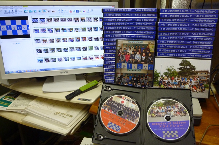 アルバム担当、記念品担当だった斎染さん 何とか間に合い「ホッ」としてます。記念品のDVDはトールケースに入れ、ジャケット、ディスク印刷、スライドショー&スナップ写真の2枚組なんだぞ!どーだ まいったか~(笑)