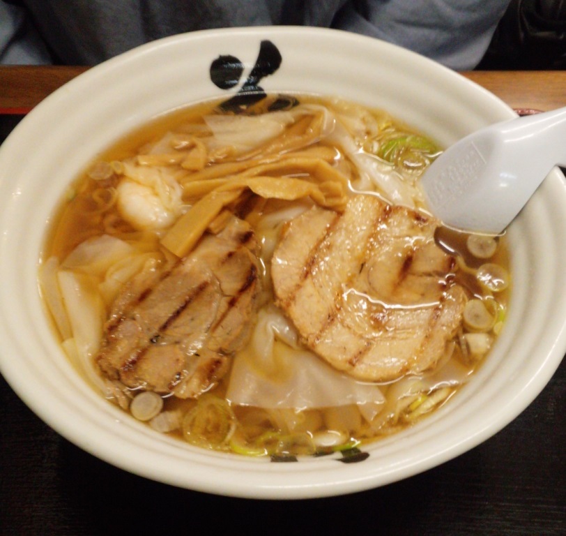 普段は醤油味を頂きます。こちらは名物の海老ワンタンラーメンです。