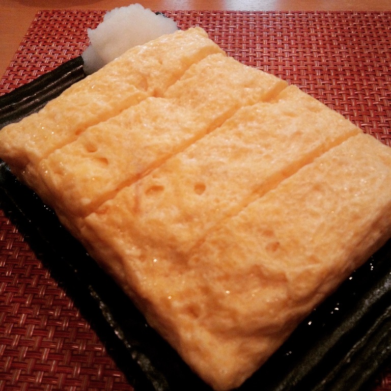 店長の卵焼き、見た目からしてうまそう。甘め、ダシ濃い目、がチョイスできるようで「ダシ濃い目」でお願いしました(^^♪