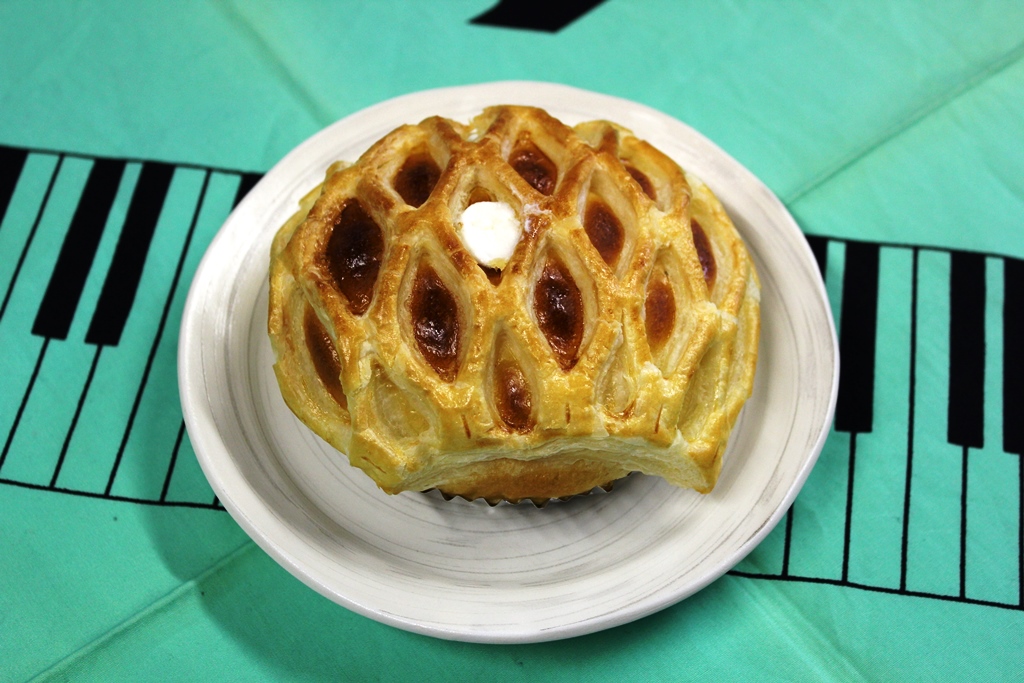 ますは、見た目ごく普通のパン、クロワッサンですね。でもお名前は「オニクロワッサン」と言いまして・・・。「鬼のようにおいしいから・・・」たとさ(^^♪ 味を皆様にお伝えできないのが残念ですが、