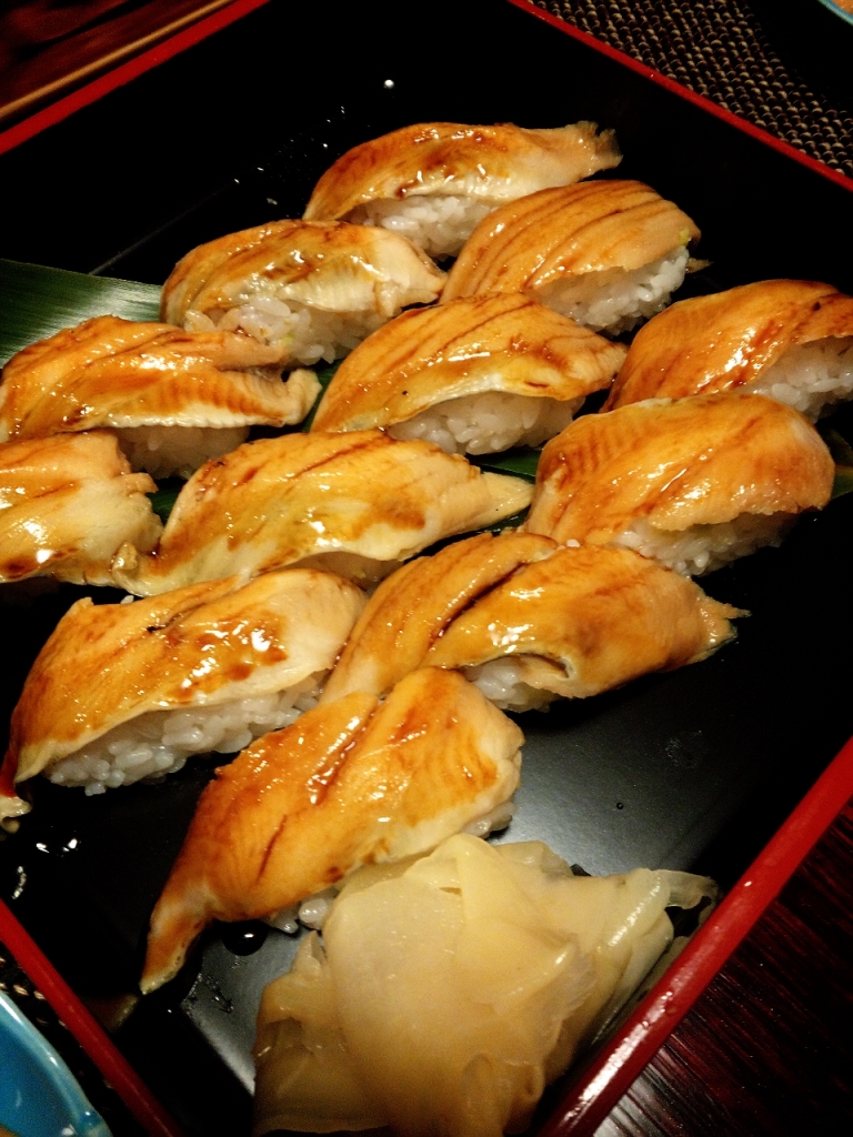 酒田の割烹綾(かっぽうりょう)さんのあなごのにぎりと天ぷら。あなご好きなわし。