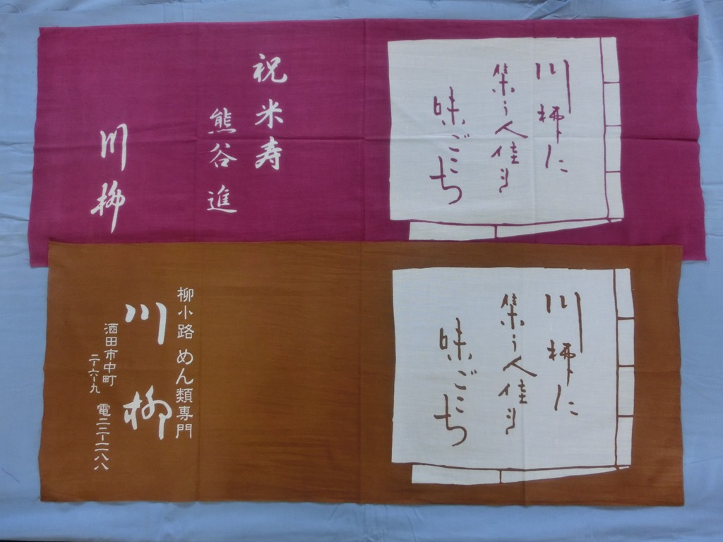 川柳さんには長年「のれん」でお世話になっております。ありがとう(_ _)ございます。W170cm×H70cm 紺白抜き・赤白抜きの2色染め。生地は10番天竺です。ちなみに夏バージョンのれんは、白地に黒文字、赤文字となります。