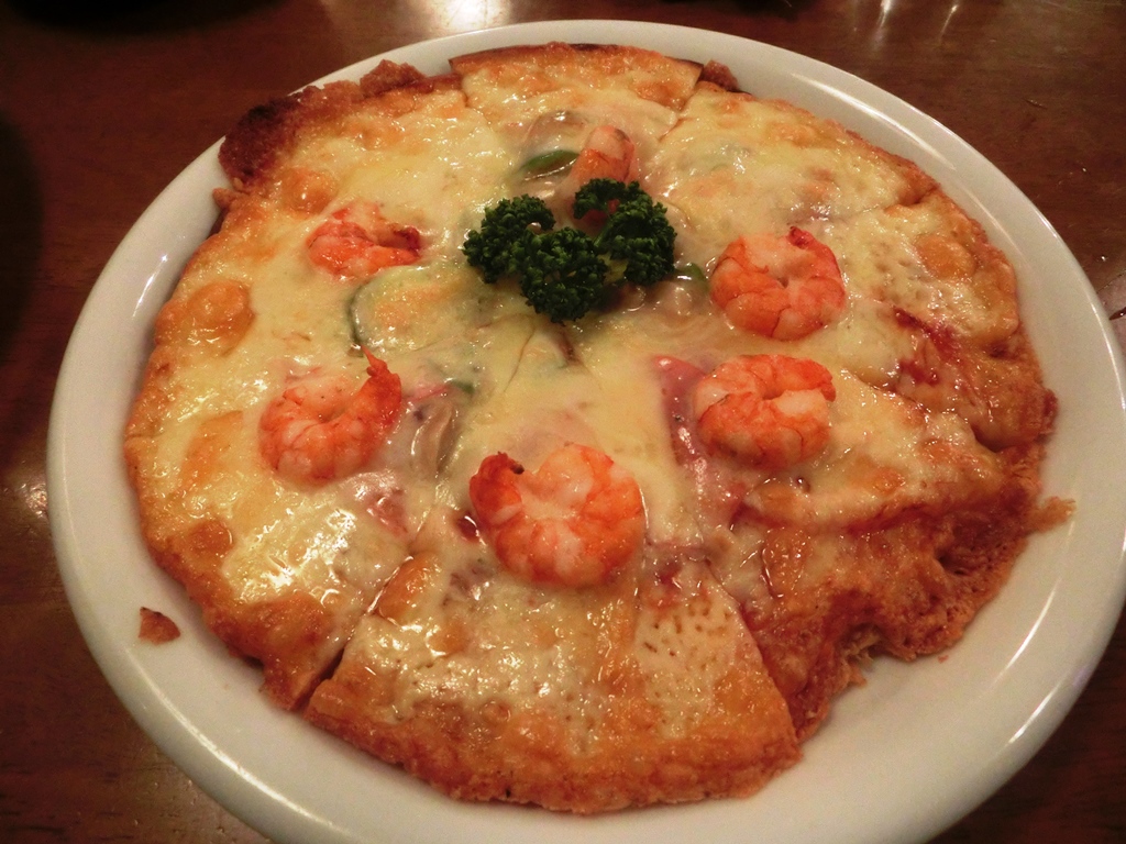 ピザオンエビ。中学男子2人は興味なしだった。出てくる早さからして冷凍モノであるいことは間違いないのだが、出来立てアツアツは美味しい。
