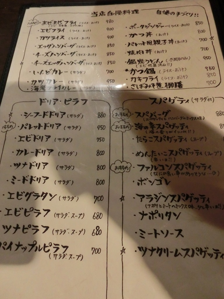 メニュー。もう1ページある。スイーツもあるからたくさんのメニューがるお店という印象。 おすすめと書いてあるのをオーダーしました。