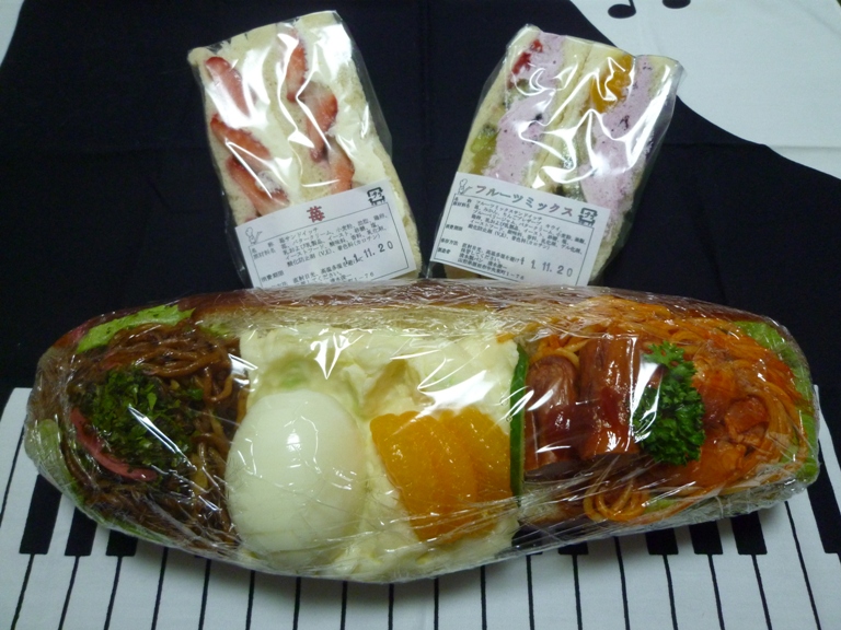 「でっけ~」 清水製パンさんの「ジャンボ」 400円です。 「苺サンド」 「フルーツミックスサンド」 各250円、クリームとフルーツの相性がバッチリです。