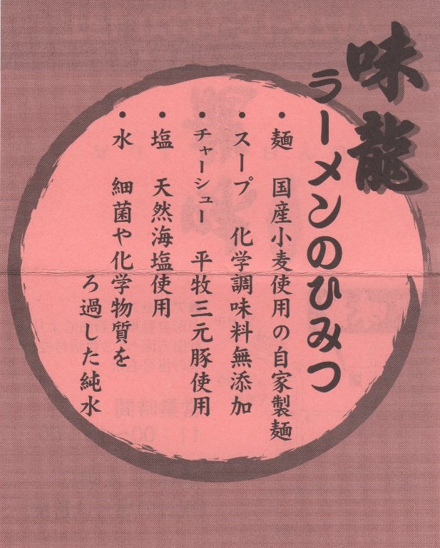 「味龍」さんです。外にある紺色の「のれん・のぼり」で大変お世話になっております。冬は期間限定の「辛味噌らーめん」がおススメです。